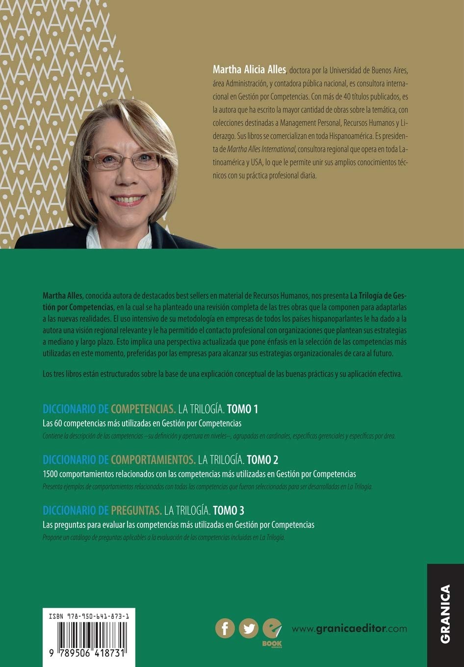 Martha Alles, conocida autora de destacados Best Sellers en materia de recursos humanos, nos presenta La Trilogía de Gestión por Competencias, en la cual se ha planteado una revisión completa de las tres obras que la componen para adaptarlas a las nuevas realidades. El uso intensivo de su metodología en empresas de todos los países hispanoparlantes le ha dado a la autora una visión regional relevante y le ha permitido el contacto profesional con organizaciones que plantean sus estrategias a mediano y largo plazo.